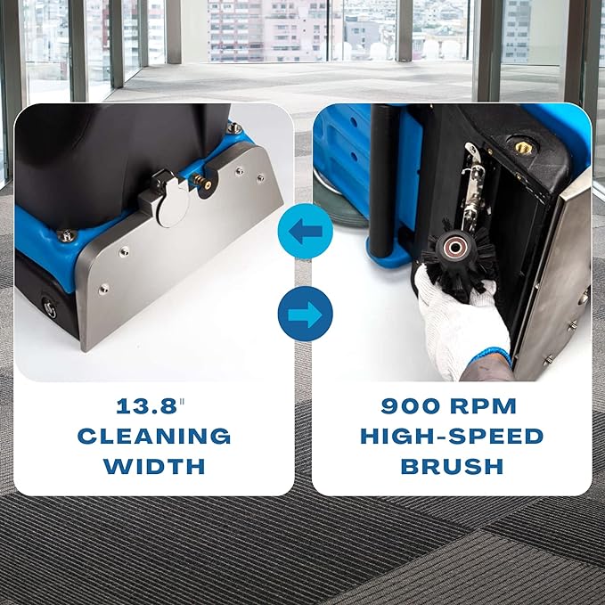 Perfect for cleaning large carpet areas, such as hotels, offices, airports, and other commercial and industrial settings, and public spaces where large amounts of foot traffic can result in heavy soiling and stains on carpets.