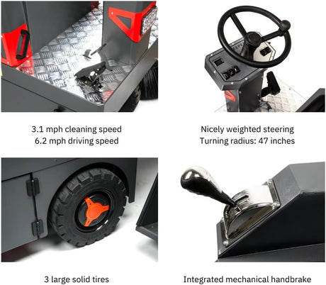 Regular price $1,899.00Unit price /UnavailableSM1250 49" Ride-on Industrial Floor Sweeper, 26 Gal Dustbin, 69000 Sqft/h Efficiency