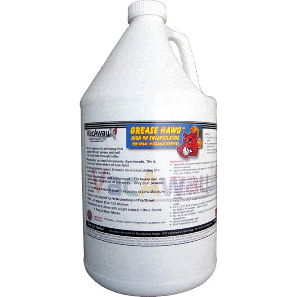 Grease Hawg is a super aggressive, encapsulating pre-spray that slices through grease and soil like a hot knife through butter. Even though it is a convenient liquid it has all the cleaning power & more of a high pH powder.