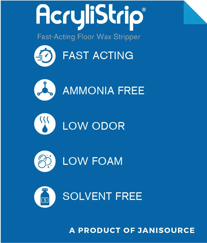 AcryliStrip is a powerful finish emulsifier designed to remove built-up wax and finish quickly—often with mop & bucket only.