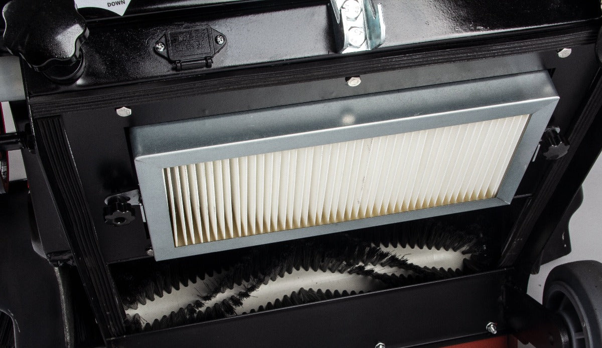It comes with a sweeper with a water tank that helps control dust while you clean. Just press one button to use the water spray system. This feature especially helps to suppress dust, preventing it from becoming airborne. This is particularly useful in areas with heavy dust accumulation, improving air quality and reducing respiratory risks for workers.