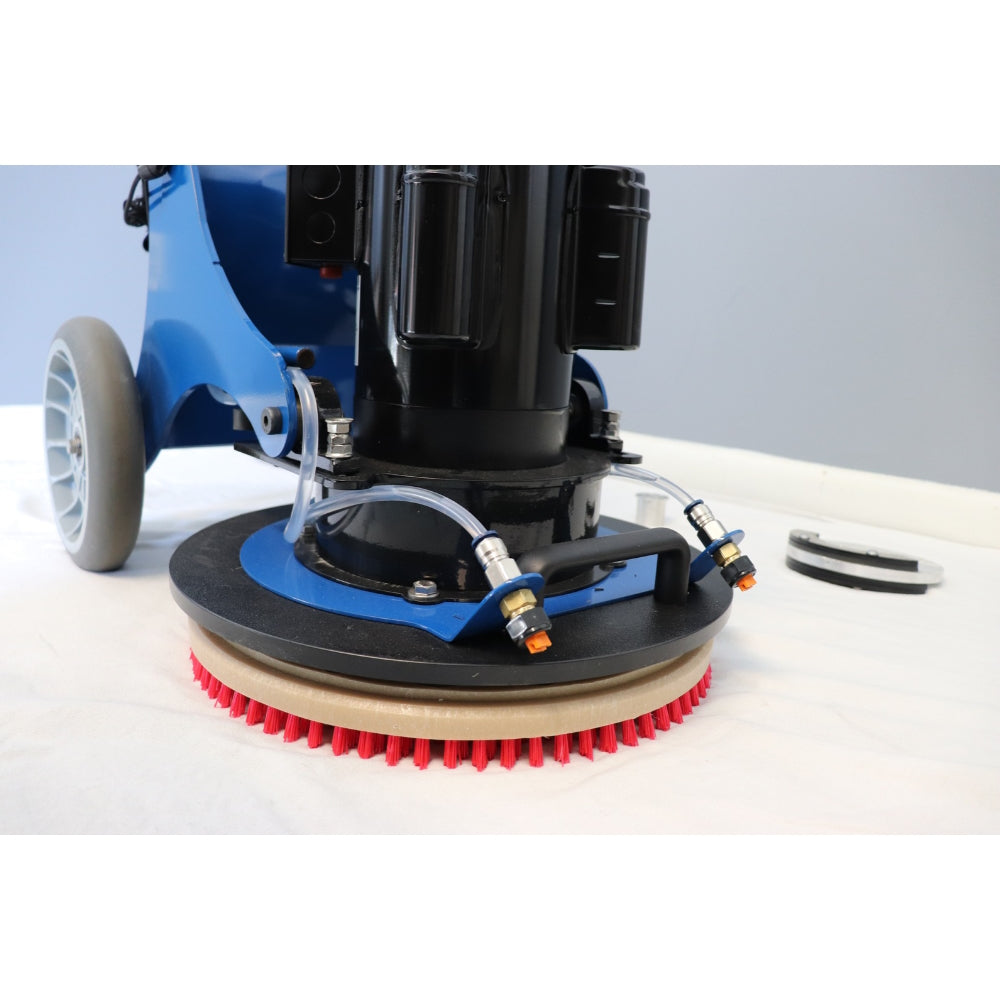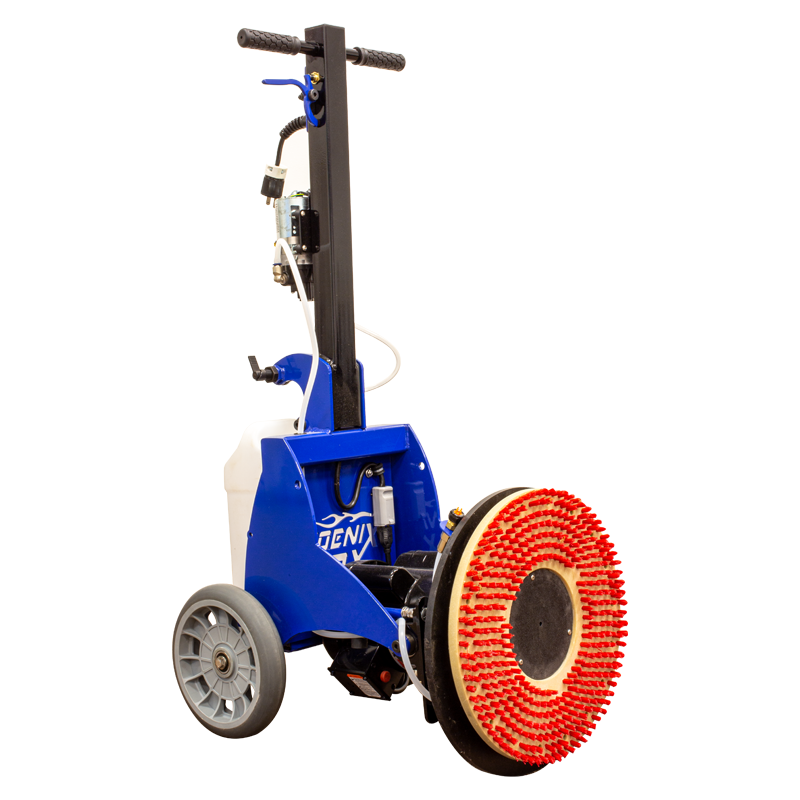 The Phoenix is versatile and highly effective for cleaning carpet, tile and grout, wood, and more. Includes an on-board sprayer. The Trinity Phoenix is a “Game Changer” when it comes to VLM (Very Low Moisture) cleaning machines. The “Tri-Directional” agitation process provides unmatched cleaning ability and is very easy for the operator to maneuver. The Trinity’s cleaning action offers simultaneously, a rotary action, an orbital or oscillating action and a tamping action which provides a very thorough agitation to all parts of the fiber. The Trinity Phoenix, combined with your favorite encapsulation chemistry allows you to clean with very low moisture at high production rates in all commercial and residential applications.